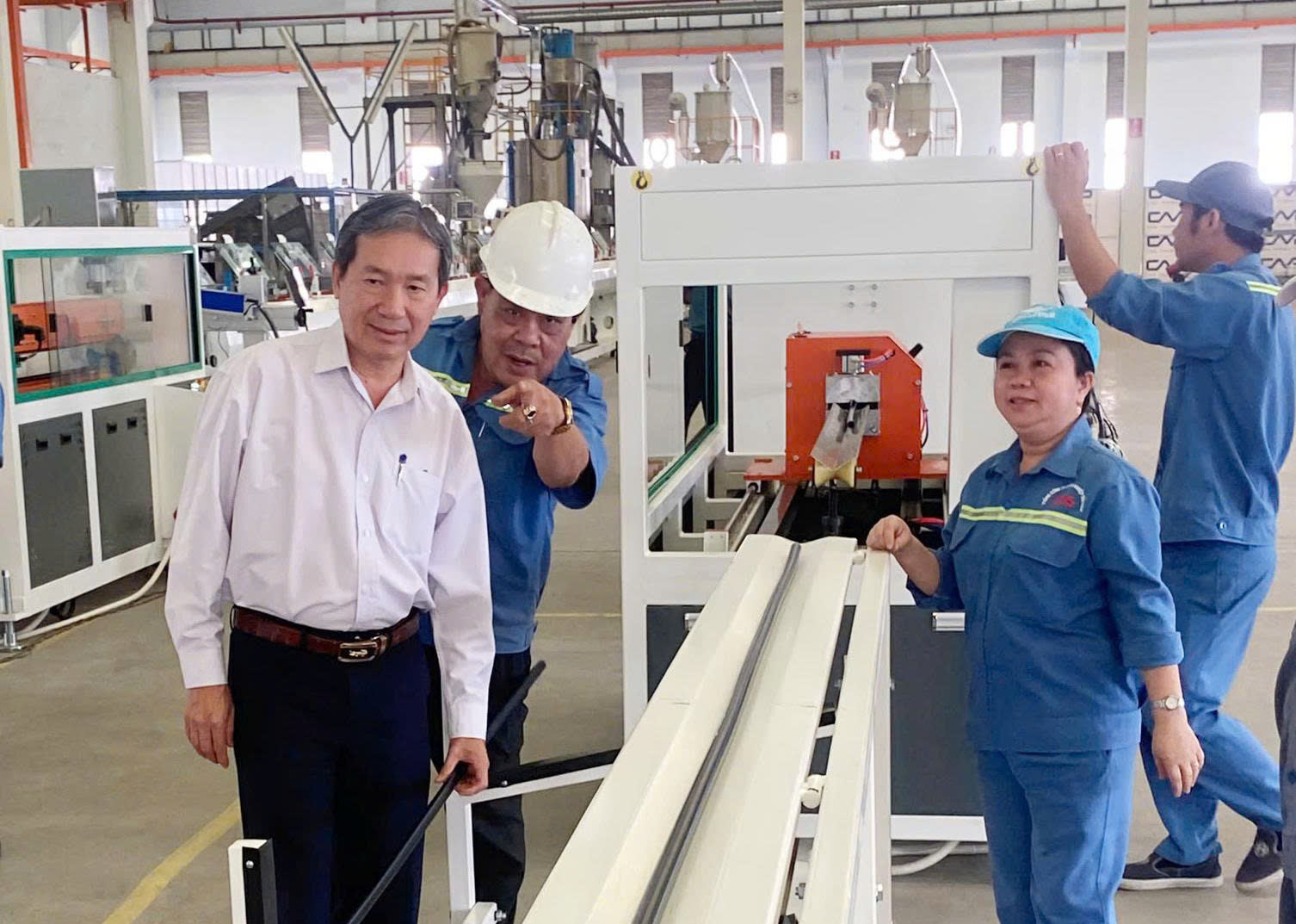 Các đồng chí lãnh đạo tham quan dây chuyền sản xuất ống nhựa HDPE