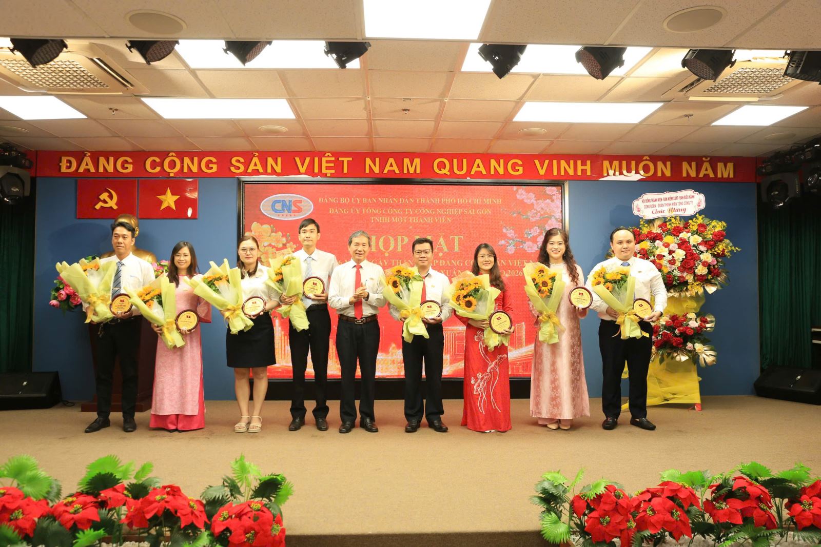 Ngày 02/02, Đảng ủy Tổng Công ty Công nghiệp Sài Gòn TNHH Một thành viên (CNS) tổ chức họp mặt kỷ niệm 96 năm Ngày Thành lập Đảng Cộng sản Việt Nam (03/02/1930 - 03/02/2026), Mừng Xuân Bính Ngọ 2026. Tham dự buổi họp mặt có các đồng chí: Huỳnh Tân Định, Thành ủy viên, Phó Bí thư Đảng ủy, Chủ nhiệm Ủy ban Kiểm tra Đảng ủy Ủy ban nhân dân Thành phố; Phạm Văn Linh, Đảng ủy viên, Chánh Văn phòng Đảng ủy UBND Thành phố; Lê Minh Khánh, Phó trưởng Ban Tổ chức Đảng ủy UBND Thành phố; Lê Ngọc Hạnh, Phó Trưởng Ban Tuyên giáo và Dân vận Đảng uỷ UBND Thành phố; Trần Phi Long, Bí thư Đảng ủy, Chủ tịch HĐTV Tổng Công ty; Nguyễn Phương Đông, Phó Bí thư Đảng ủy, Tổng Giám đốc Tổng Công ty.