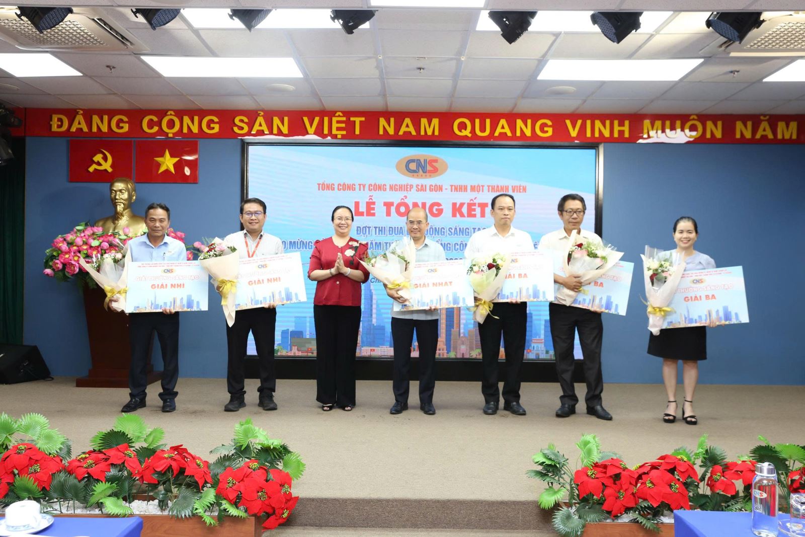 Nhằm thiết thực chào mừng kỷ niệm 20 năm ngày thành lập Tổng Công ty Công nghiệp Sài Gòn (CNS), chiều 24/03/2026, CNS đã tổ chức Lễ tổng kết và trao Giải thưởng Sáng tạo CNS trong đợt thi đua lao động sáng tạo chào mừng kỷ niệm 20 năm thành lập Tổng Công ty (27/3/2006 – 27/3/2026) nhằm tôn vinh các tập thể, cá nhân có sáng kiến, giải pháp kỹ thuật, cải tiến quản lý và ứng dụng công nghệ mang lại hiệu quả thiết thực trong hoạt động sản xuất – kinh doanh. Tham dự lễ tổng kết có các đồng chí: Huỳnh Ngọc Thông, Phó Tổng Giám đốc Tổng Công ty; Huỳnh Thị Lan Hương, Ủy viên Ban Thường vụ Đảng ủy, Giám đốc Nhân sự Tổng Công ty; Lê Ngọc Hải, Ủy viên Ban Thường vụ Đảng ủy Tổng Công ty, Bí thư Đảng ủy, Chủ tịch HĐTV Công ty TNHH MTV Cao su Thống Nhất cùng các tập thể và cá nhân tiêu biểu được vinh danh tại hội nghị.