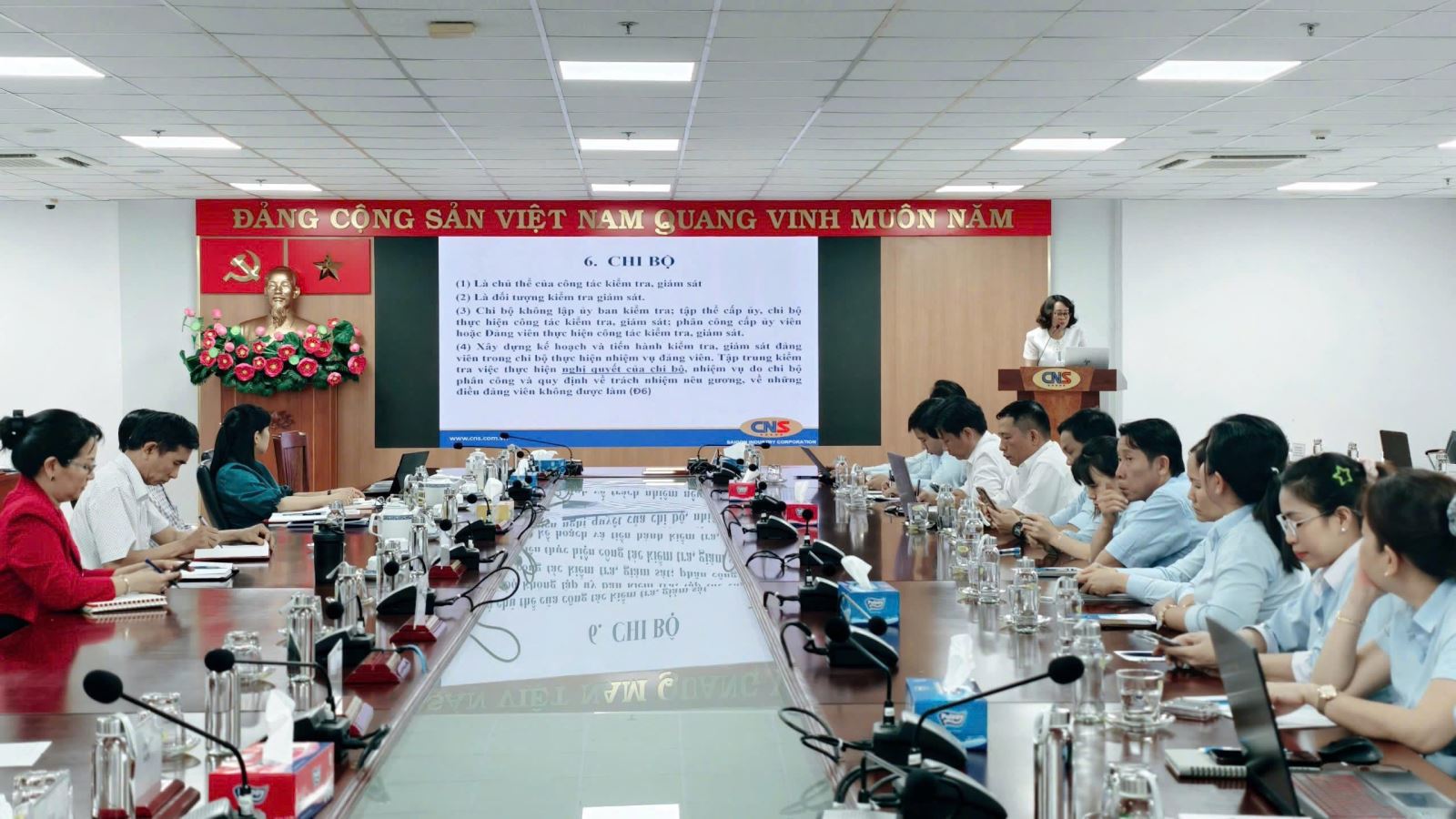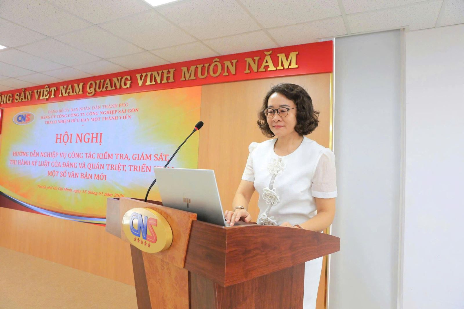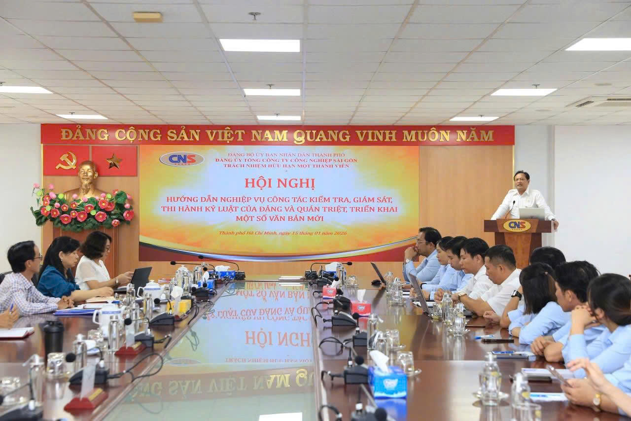Ngày 15/01, Đảng ủy Tổng Công ty Công nghiệp Sài Gòn TNHH MTV (CNS) đã tổ chức Hội nghị hướng dẫn nghiệp vụ công tác kiểm tra, giám sát, thi hành kỷ luật đảng và quán triệt một số văn bản mới cho cơ sở. Tham dự có các đồng chí: Trần Phi Long, Bí thư Đảng ủy, Chủ tịch HĐTV Tổng Công ty; Hoàng Thị Nga, Ủy viên Ban Thường vụ Đảng ủy, Chủ nhiệm Ủy ban Kiểm tra Đảng ủy Tổng Công ty; Nguyễn Hồng Thúy, Ủy viên Ban Chấp hành Đảng bộ, Phó Chủ nhiệm Ủy ban Kiểm tra Đảng ủy, Phó Chánh Văn phòng HĐTV Tổng Công ty.