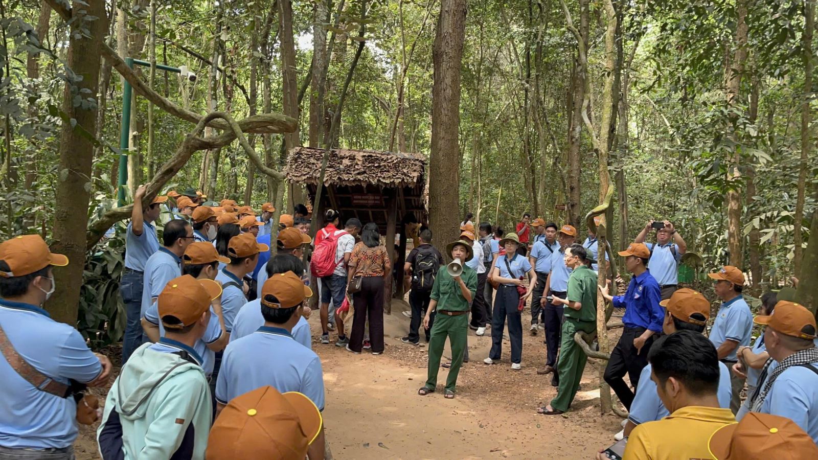 Dịp này, các đồng chí lãnh đạo cùng toàn thể cán bộ, đảng viên và quần chúng đã được tham quan và nghe thuyết minh về Khu di tích lịch sử Địa đạo Củ chi. Được biết, Địa đạo Củ Chi là một hệ thống phòng thủ trong lòng đất ở xã An Nhơn Tây, cách trung tâm Thành phố Hồ Chí Minh 69 km về hướng Tây-Bắc. Hệ thống này được quân kháng chiến Việt Minh và Mặt trận Dân tộc Giải phóng miền Nam Việt Nam đào trong thời kỳ Chiến tranh Đông Dương và Chiến tranh Việt Nam. Hệ thống địa đạo bao gồm bệnh xá, nhiều phòng ở, nhà bếp, kho chứa, phòng làm việc, hệ thống đường ngầm dưới lòng đất, dài khoảng 250 km và có các hệ thống thông hơi tại vị trí các bụi cây. Địa đạo Củ Chi được xây dựng ở điểm cuối Đường mòn Hồ Chí Minh, trên vùng đất được mệnh danh là "đất thép" để ca ngợi ý chí phòng thủ kiên cường của quân dân nơi đây. Trong Chiến dịch Tết Mậu Thân 1968, quân Giải phóng miền Nam đã xuất phát từ hệ thống địa đạo này để tấn công vào trung tâm Sài Gòn. Sau chiến tranh, khu địa đạo Củ Chi trở thành di tích lịch sử cấp quốc gia. Năm 2015, khu di tích lịch sử địa đạo Củ Chi đón nhận danh hiệu Anh hùng Lao động do có thành tích đặc biệt xuất sắc trong lao động, sáng tạo. Trong 20 năm hoạt động, khu di tích đón hơn 20 triệu lượt khách trong và ngoài nước tới tham quan, tìm hiểu. Ngày 12 tháng 2 năm 2016, khu di tích đón nhận Bằng xếp hạng Di tích quốc gia đặc biệt. Thông qua mỗi hành trình, các cán bộ, đảng viên được tiếp thu thêm nhiều kiến thức mới, tìm hiểu về truyền thống hào hùng tại các địa chỉ đỏ, căn cứ cách mạng, nâng cao bản lĩnh chính trị và lòng tự hào dân tộc.