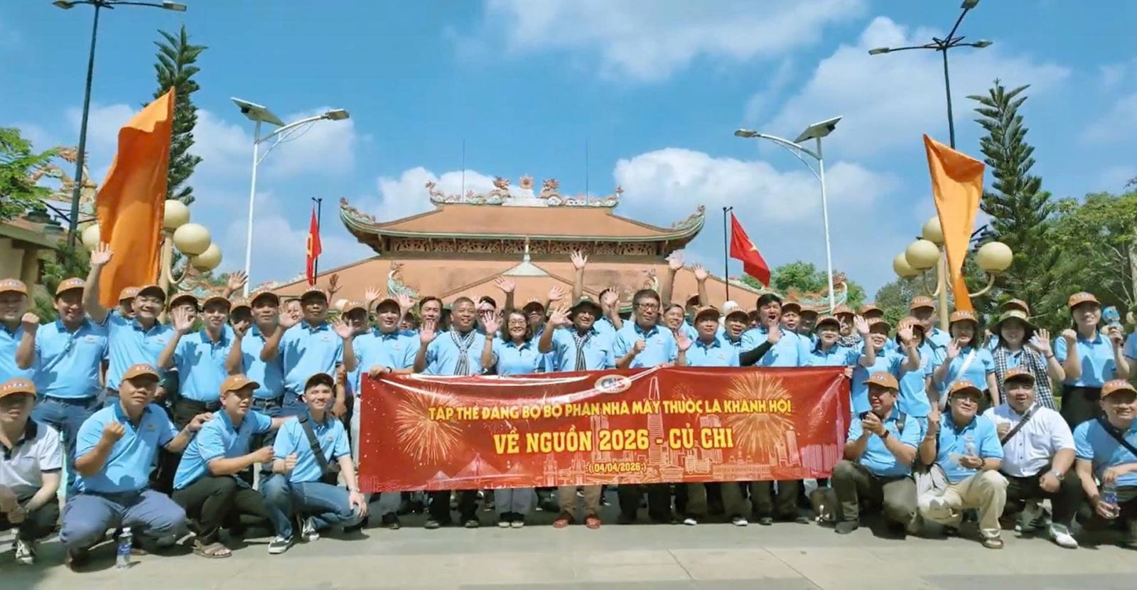 Các đồng chí lãnh đạo cùng Tập thể đảng viên, quần chúng Đảng bộ bộ phận Nhà máy thuốc lá Khánh Hội chụp hình lưu niệm tại hành trình