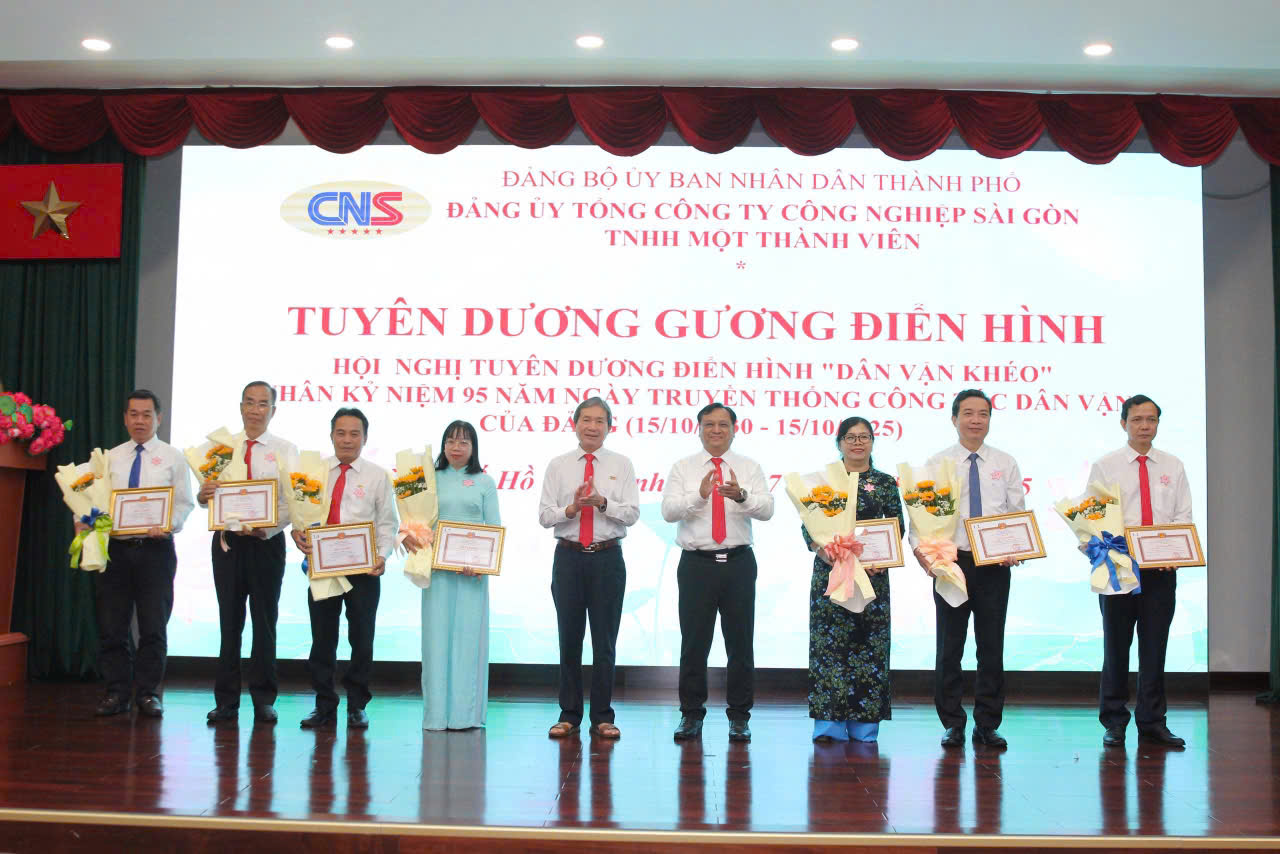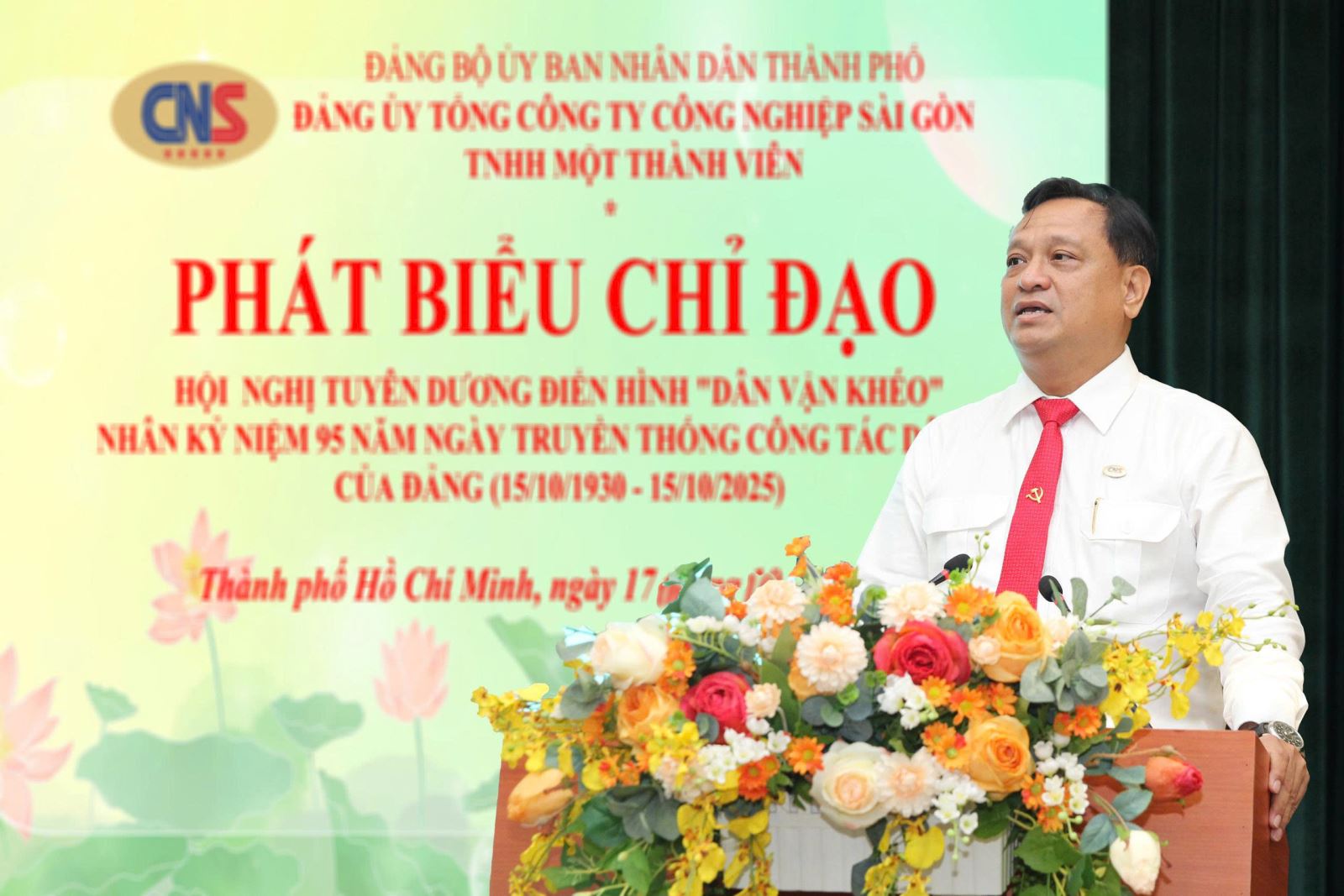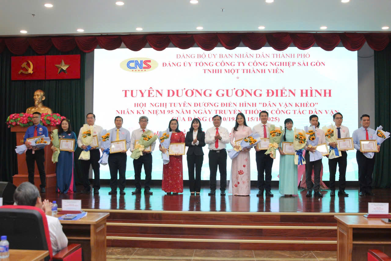 Lễ tuyên dương các tập thể, cá nhân điển hình “Dân vận khéo” năm 2025 tại Bảo tàng Tôn Đức Thắng. Tham dự có các đồng chí: Lê Ngọc Hạnh - Phó Trưởng ban Tuyên giáo và Dân vận Đảng ủy Ủy ban nhân dân Thành phố; Trần Phi Long, Bí thư Đảng ủy, Chủ tịch HĐTV Tổng Công ty; Nguyễn Phương Đông, Phó Bí thư Đảng ủy, Tổng Giám đốc Tổng Công ty cùng các đồng chí trong Ban Thường vụ Đảng ủy Tổng Công ty, Hội đồng thành viên, Ban Kiểm soát, Ban Tổng Giám đốc, lãnh đạo các đơn vị thành viên, Bí thư các chi, đảng bộ trực thuộc cùng 45 gương điển hình “Dân vận khéo” được tuyên dương tại hội nghị.